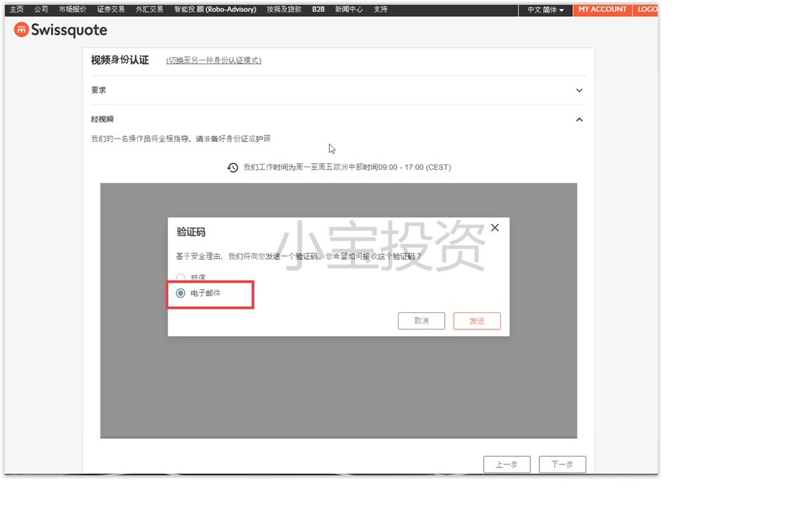 有下面这个可以选择视频认证的开户办法,请立刻发邮件给我们asia@swissquote.com ,