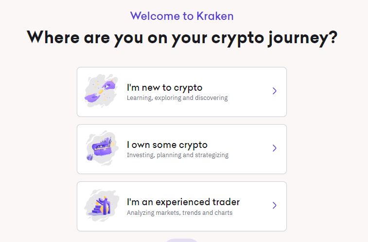 界面会询问你是新手、中级用户还是已有丰富经验,这没有关键差异,只是 Kraken 会根据你的选择优先推荐几种功能。