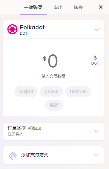 付款方式为刷卡,订单类型可设置单次立即购买或限价单、定期买入等。如果账户内已有加密货币,也能在这个界面卖币或兑换成其他币,这算是一个简易的交易界面。
